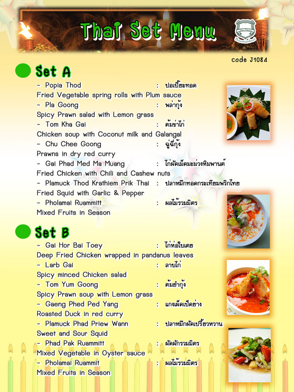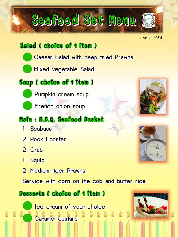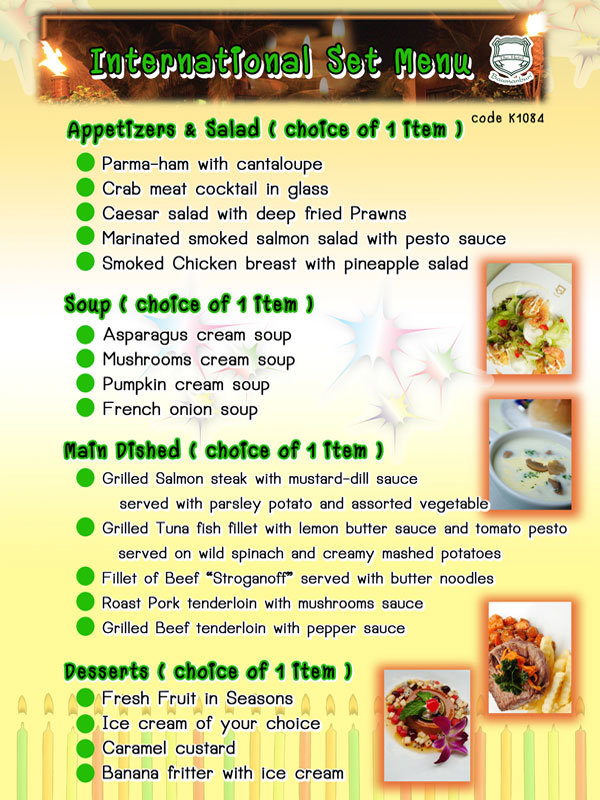 A truly unique and romantic candlelit dinner experience only 1,750 Baht. for Two persons with selection of a set Exclusive dinner between Thai Set Dinner or International Set Dinner or Seafood Set Dinner